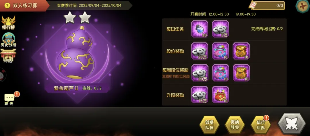 【葫芦娃】双人练習赛第8赛季,12月19日同心协力!