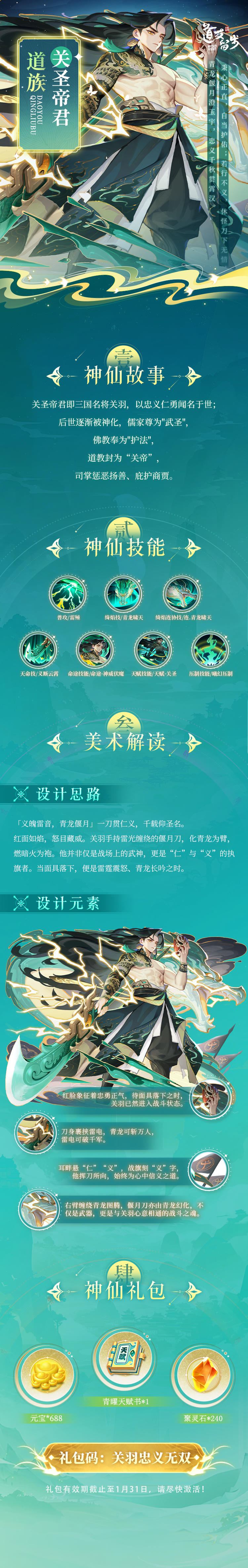 每回合回合前,关圣帝君随机进入 <忠之形态> 或 <勇之形态> (持续1个战斗回合;受到降神技时只会触发 <忠之形态> 的绮焰技);每次进入<忠之形态> 时,自身获得1层<忠魂> ;每次进入<勇之形态> 时,立刻消耗掉自身所有 <忠魂> ;我方全体获得 <义魄> 状态;我方全体道族神仙(含幻化)湮灭减伤 提升30%;以上命途效果在关圣帝君死亡后消失。