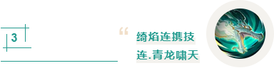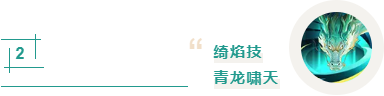 <青龙庇佑> :神焰祝福;若自身处于<勇之形态> 且受到神仙幻仙主动攻击后,自身释放一次绮焰技(降神类技能),该效果每回合最多触发1次;不可被复制;不可被加减回合;不可被驱散(9级)/抵御(9级)/转移;持续2回合。