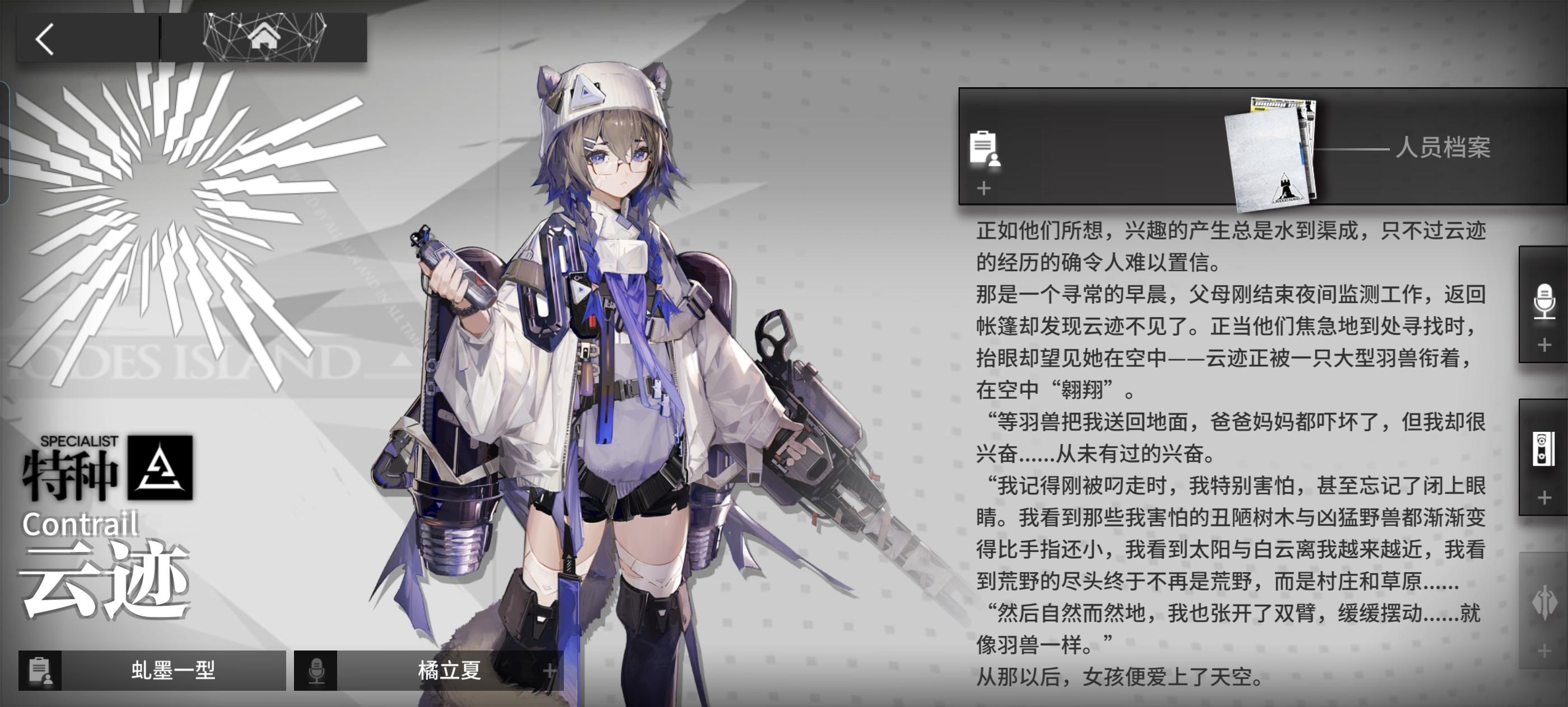 ④云迹干员告诉我们,喜欢上天空的起因不一定是因为喜欢飞翔,也有可能是因为小时候被大鸟叼上高空差点被吃掉