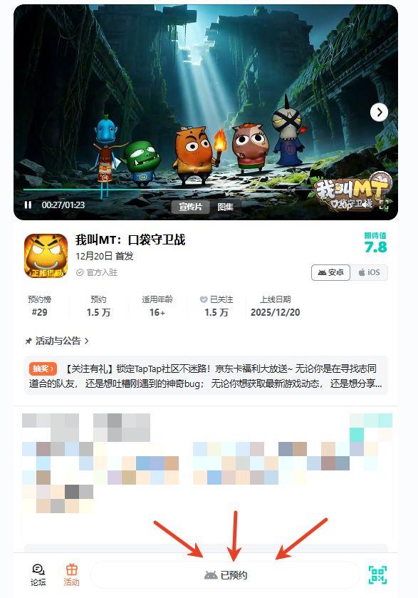 1、TapTap:搜索《我叫MT:口袋守卫战》点击【关注+预约】,明日10点准时来玩!