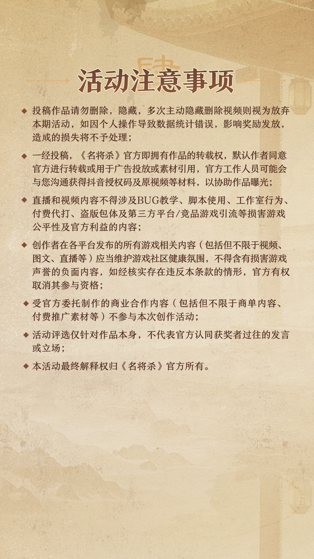 进行《名将杀》游戏直播或发布游戏相关视频,单人最高可领8000元!还有活动限定至臻手牌皮肤「楮墨生春」等你来拿!