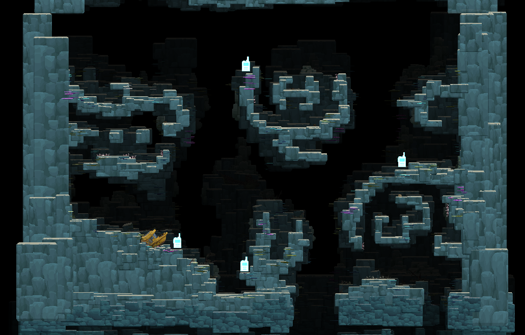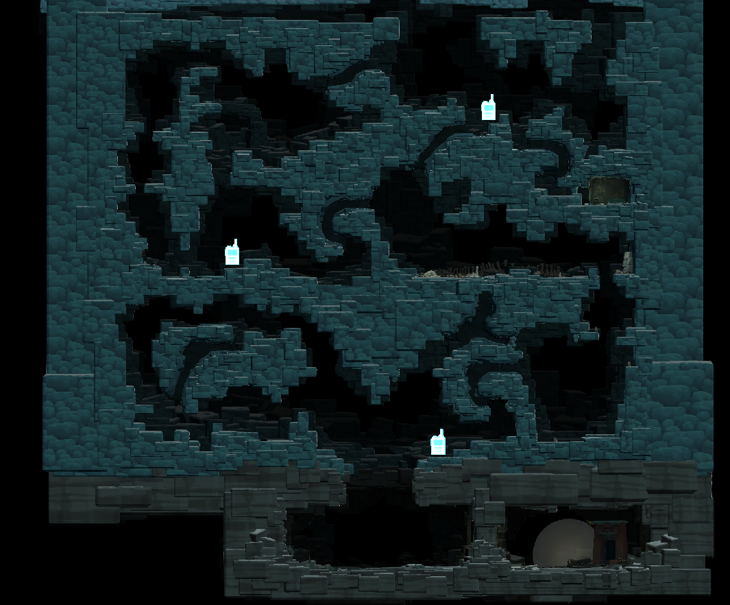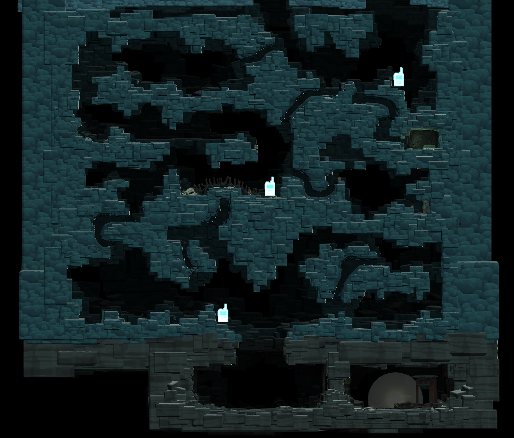 蓝洞的地图分为上中下三个部分,共有5个上层 5个中层和2个下层,每次戴夫开始潜水时生成地图,都是在这几张图里每部分随机抽一张拼接起一张完整的图