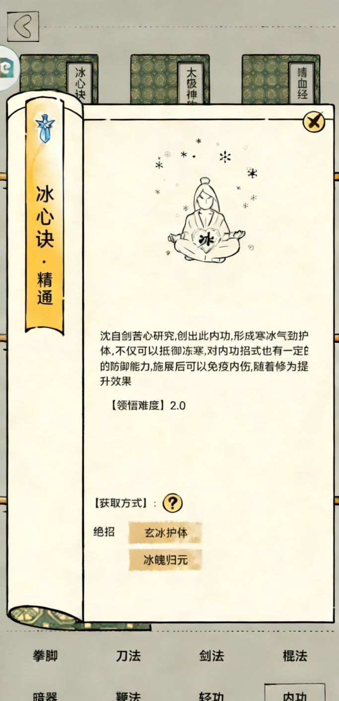 (在玄冰护体期间,攻击附带气劲。气劲可侵蚀对手经脉,降低其内力运转与招式威力)
