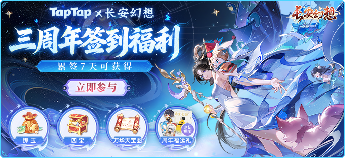 不管是坚守长安的老伙计,还是刚想踏入幻想世界的新同门,这次 Tap 专属双活动 + 十万人周年大服福利,直接把快乐拉满~