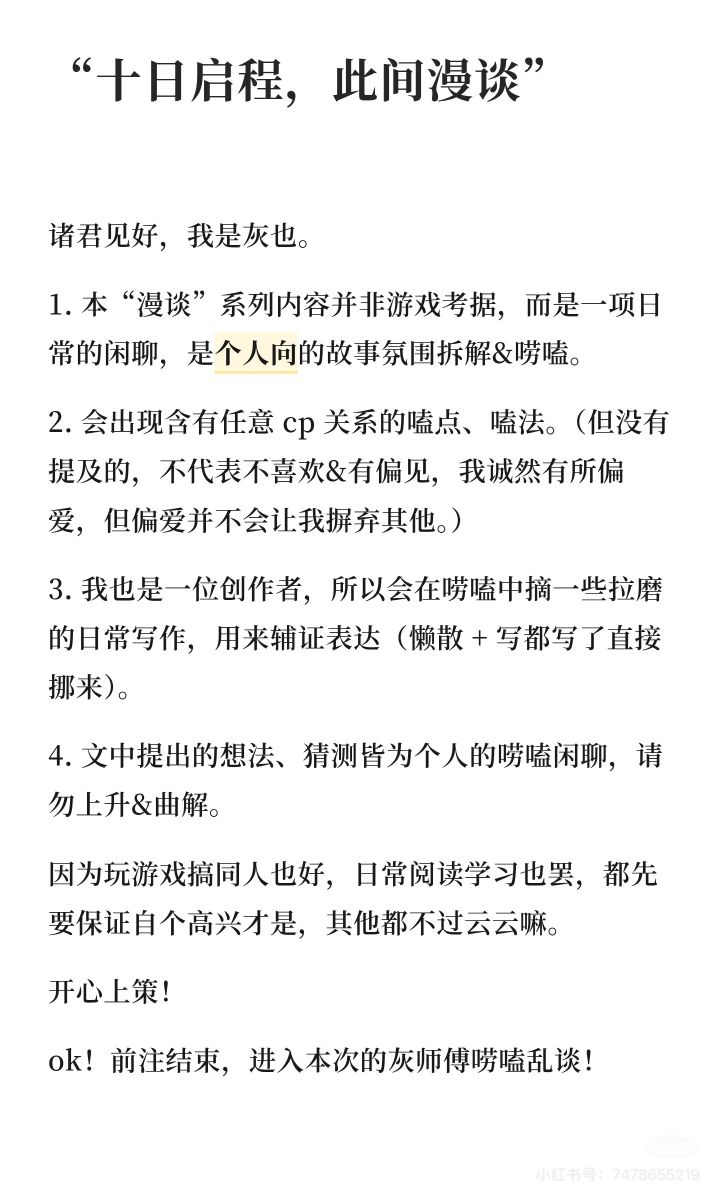 1. 本系列内容并非游戏考据,而是一项日常的闲聊,是个人向的故事氛围拆解&唠嗑。