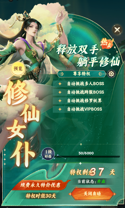 开启条件:开服≥61天且修仙12转或修仙19转