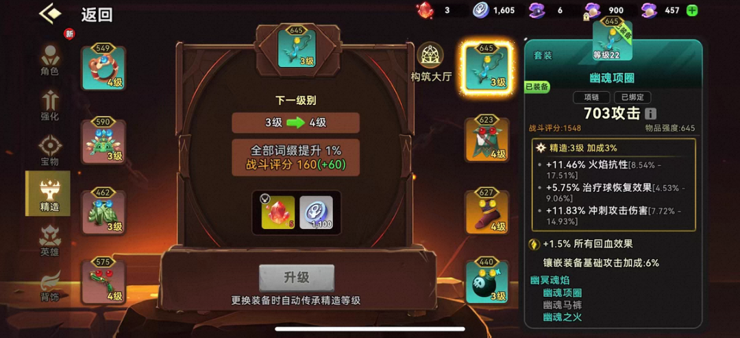 词条优先级:攻击类(攻击强度、暴击率、暴击伤害)>生存类(生命值、防御、减伤)>功能类(攻击距离、攻速、技能冷却)。就是每次打完关卡就退出来领取各种奖励和检查背包,有能用的装备全带上。装备以攻击为主哪个评分高上哪个。