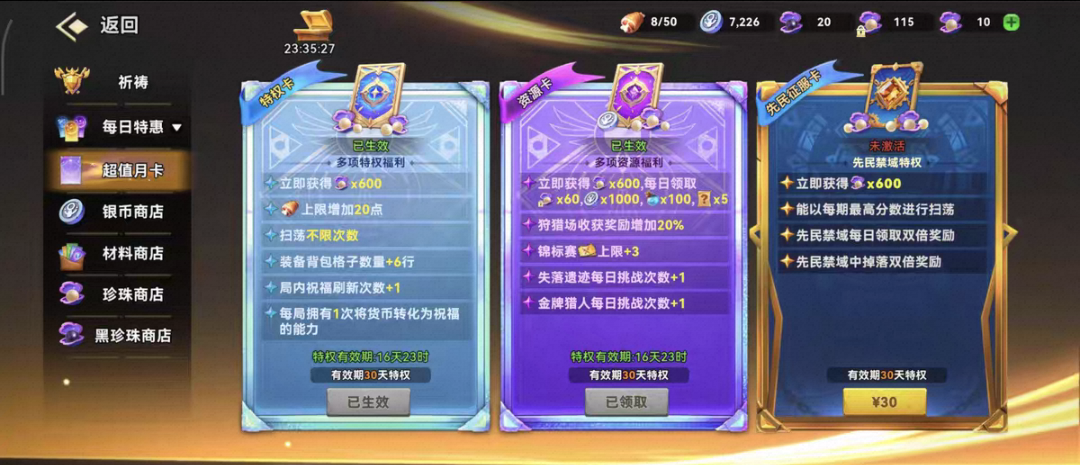 基础上限:零氪每日30点,每关消耗5点,可刷6关,特权卡用户上限50点,可刷10关。