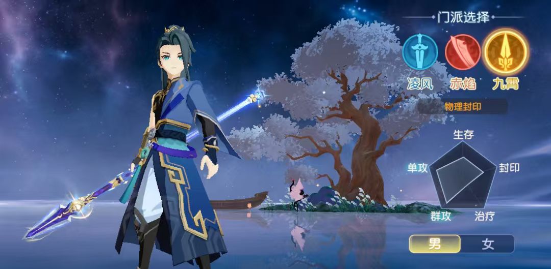 九霄的定位是物理封印,物理更偏重于封印,可以理解为一个有几率控制的物理输出,这也是使这职业在PVP作用远大于PVE。从官方五维图图看,其输出能力单体不如剑、群体不如刀,像个四不像,但也变相体现功能全面,灵活多变。