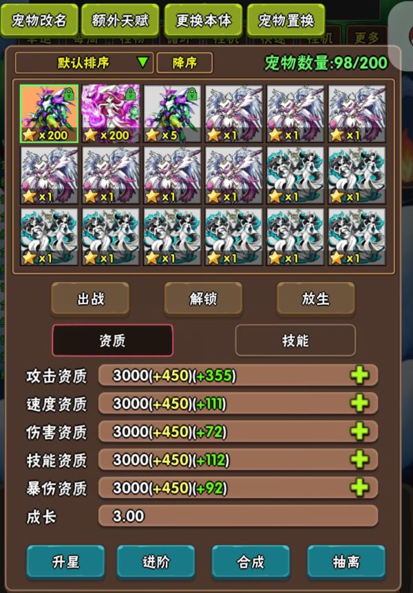 如图,我们需要将这九个宠物的一个技能全部合成到同一个宠物身上,其它的技能不能说没有用吧,只能说用处不大