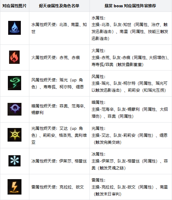 传火者可以根据悬赏boss的弱点选择对应的阵容,部分新手传火者没有对应属性的up角色,可以根据自身游玩进度调整阵容