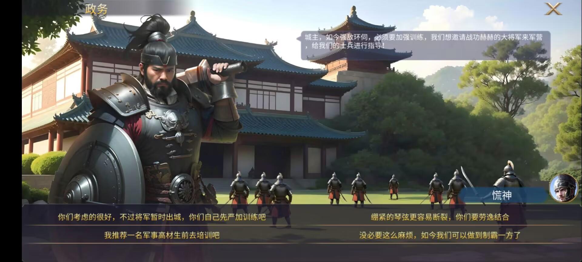 选择1:你们考虑的很好,不过将军暂时出城,你们自己先严加训练吧。