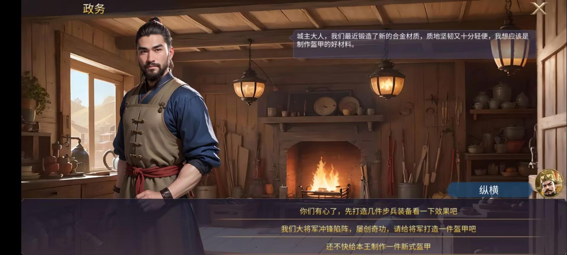 选择2:我们大将军冲锋陷阵,屡创奇功,请给将军打造一件盔甲吧。