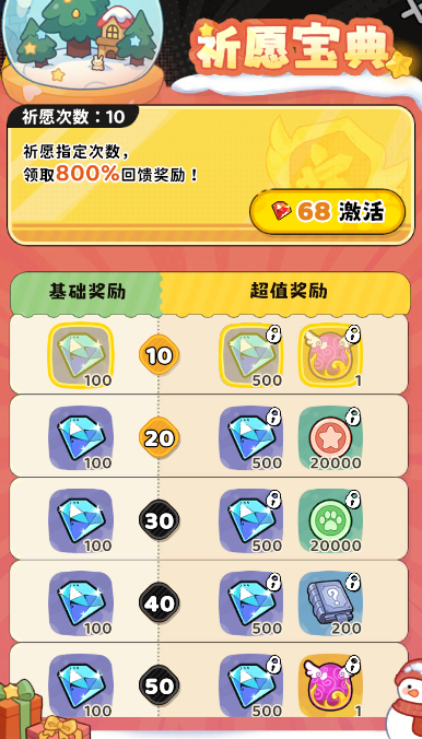 祈愿宝典68红钻,如果要皮肤就顺带购买,奖励1w蓝钻加一些资源性价比较高。