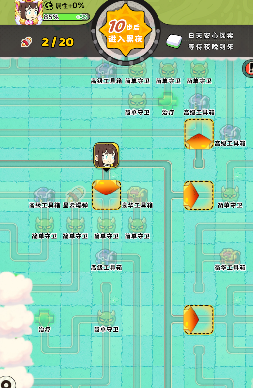 使用已有英灵消耗门票探索新地图,收集星云宝蛋,在地图中每次行动需要花费5%生命,需谨慎探索。