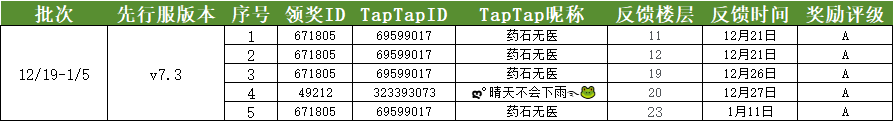 - 参与Bug反馈的冒险者需提供实际发生bug的先行服角色ID,并提供对应先行服角色页面截图,若信息错误可能导致奖励无法正常发放 :0