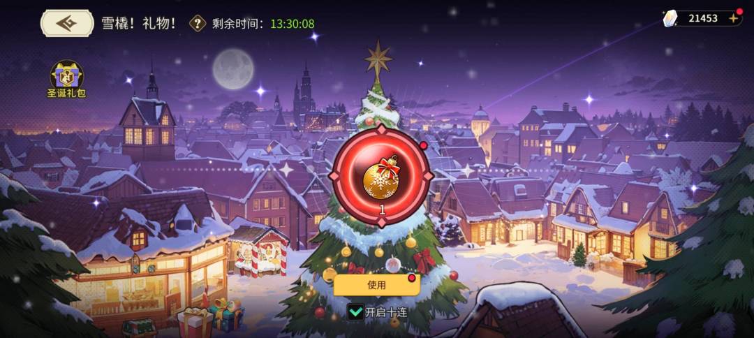 每日花费曜晶购买圣诞球,使用后可获得随机奖励,越高级的圣诞球奖励越丰富;