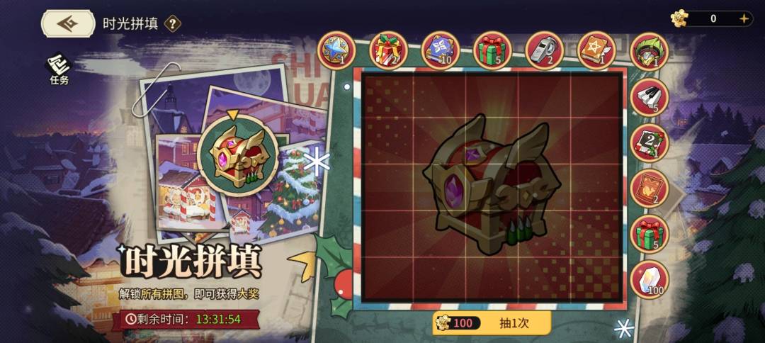 完成时光拼填内的每日任务,可获得时光碎片等奖励,完美解锁所有拼图还可获得神秘大奖!