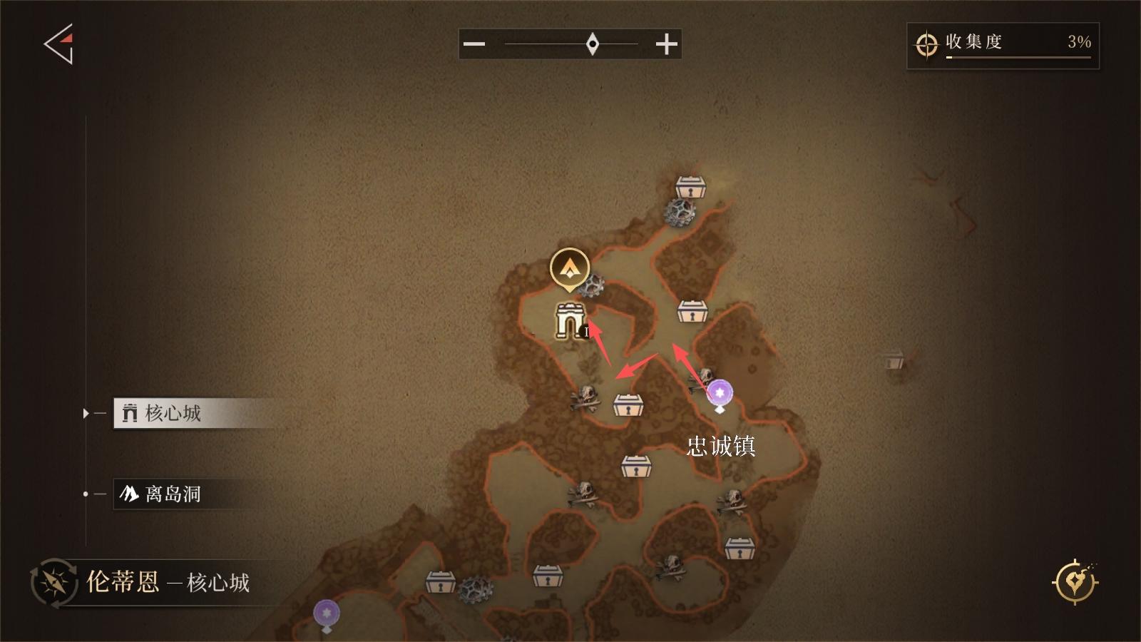 从忠诚镇传送点出发,进入「离岛洞」,按地图箭头指示直达