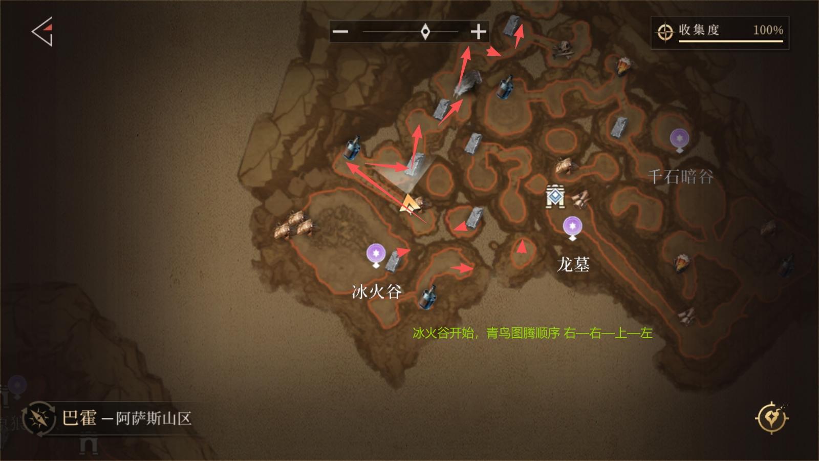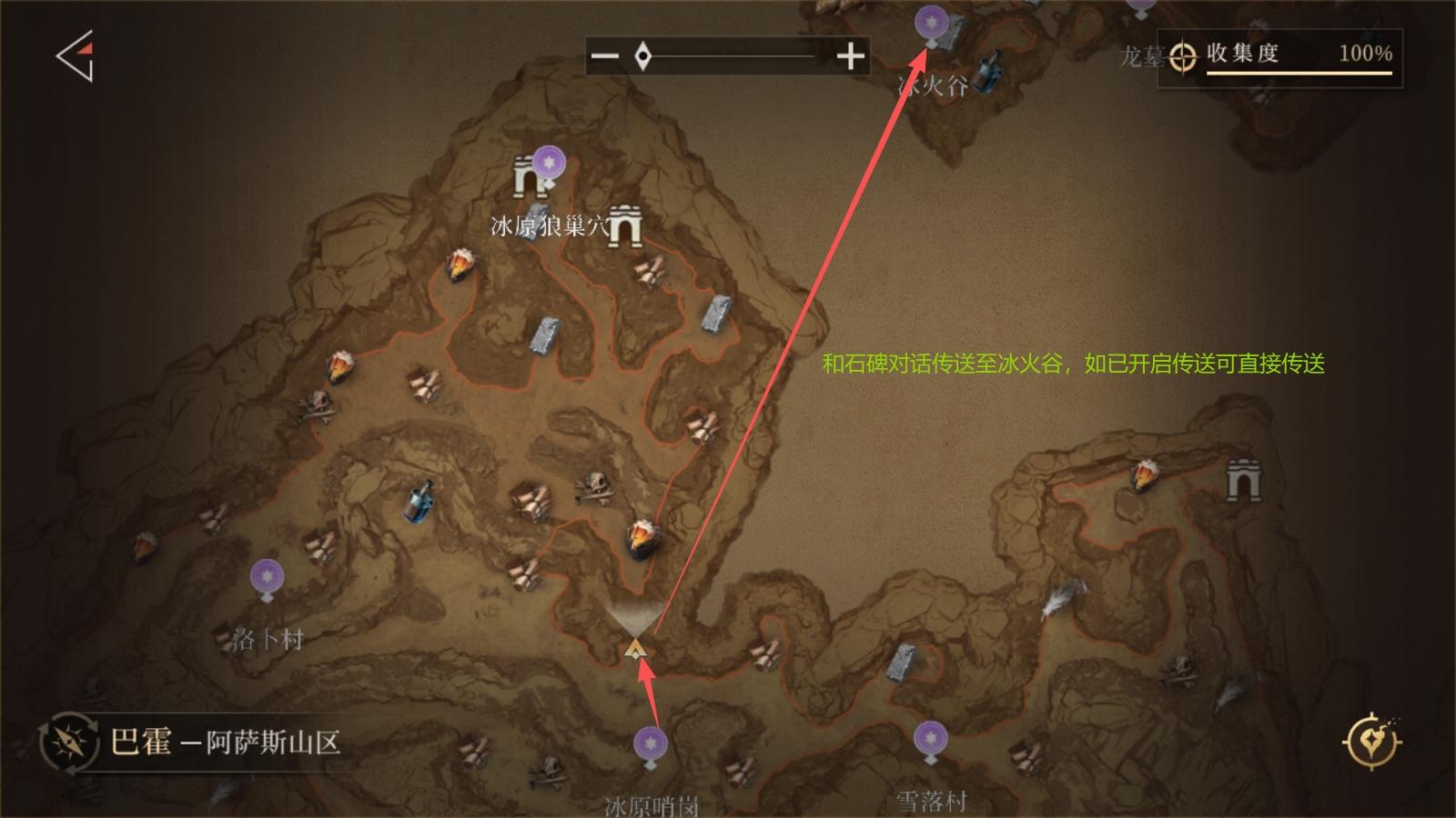 从「炎狼遗迹」出发,通过青鸟图腾传送至「生灵聚落」,再使用传送锚点前往