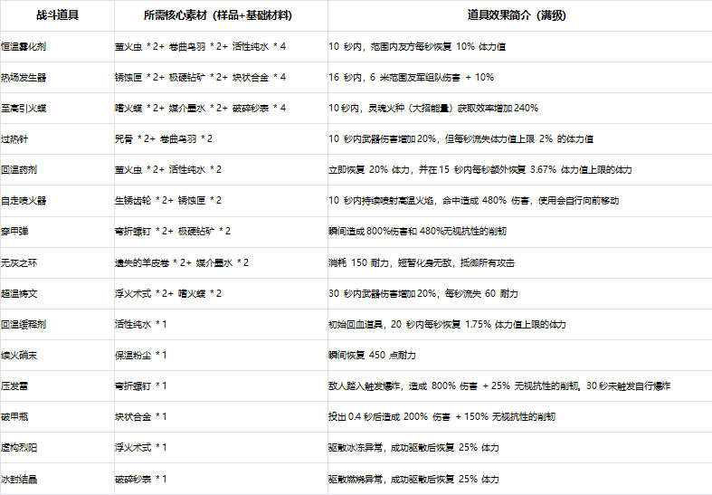 战斗道具合成素材汇总表(清晰对照)