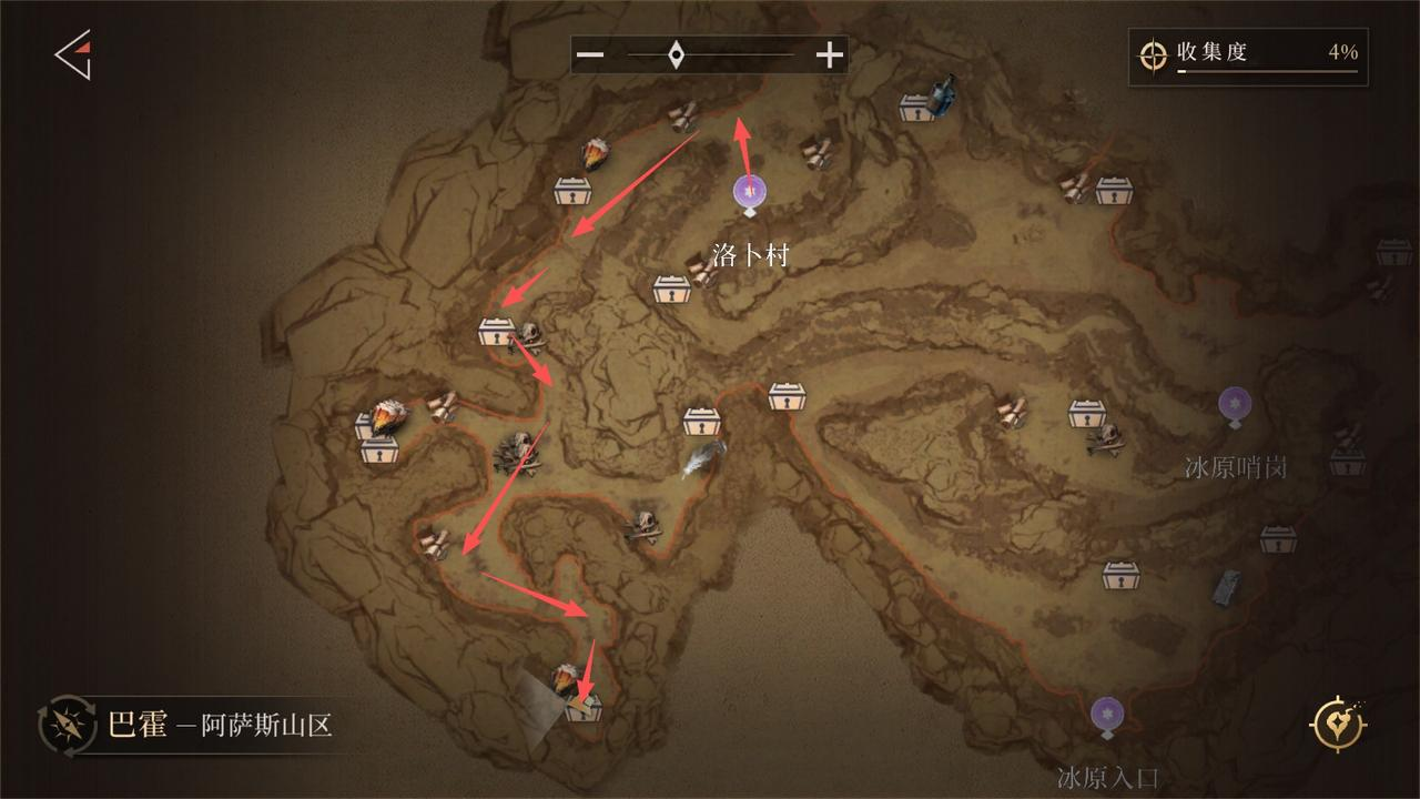 从「洛卜村」传送点出发,按箭头方向行进