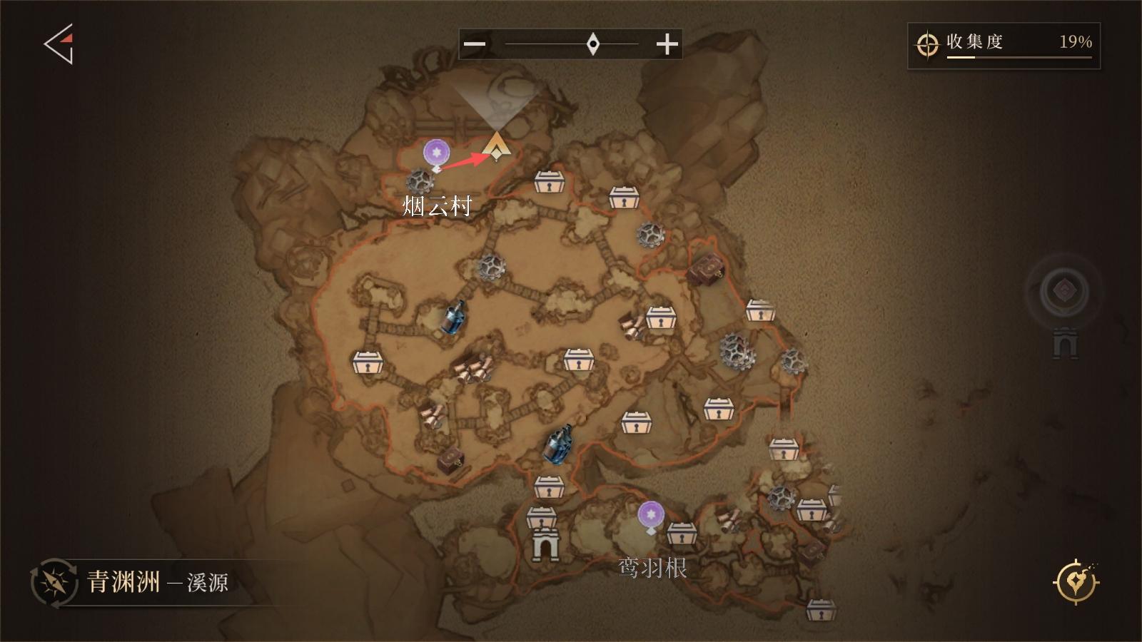 从「鸾羽根」前往「烟云村」(主线不涉及该地图,容易遗漏),宝箱在传送点附近