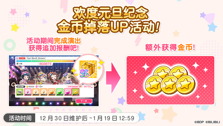「欢度元旦纪念歌曲演出任务」&「金币掉落追加活动」预告!