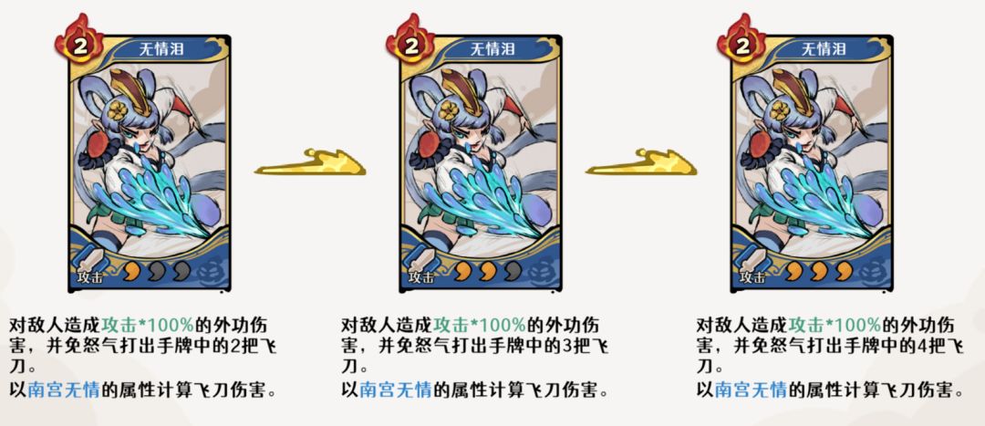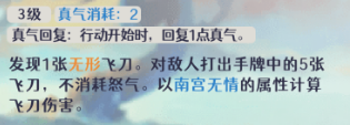 打出飞刀手段优先级:南宫技能>南宫手牌实牌武学卡>海渊武学卡获取的南宫无形武学卡