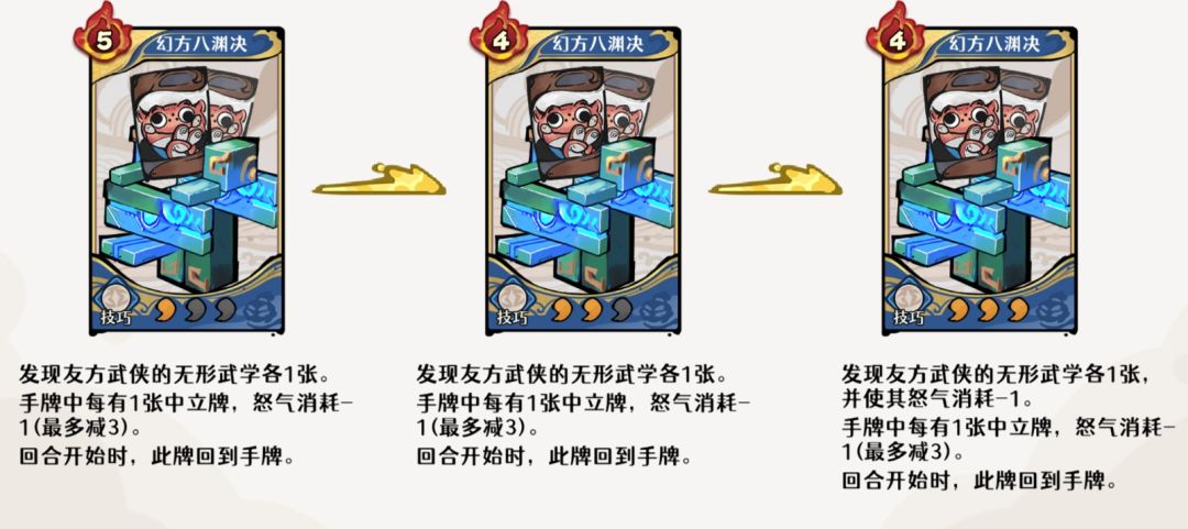 (5)墨海渊技能:手中1怒以上的技巧卡不足时,发现4张无形技巧卡,有几率为追月飞刀