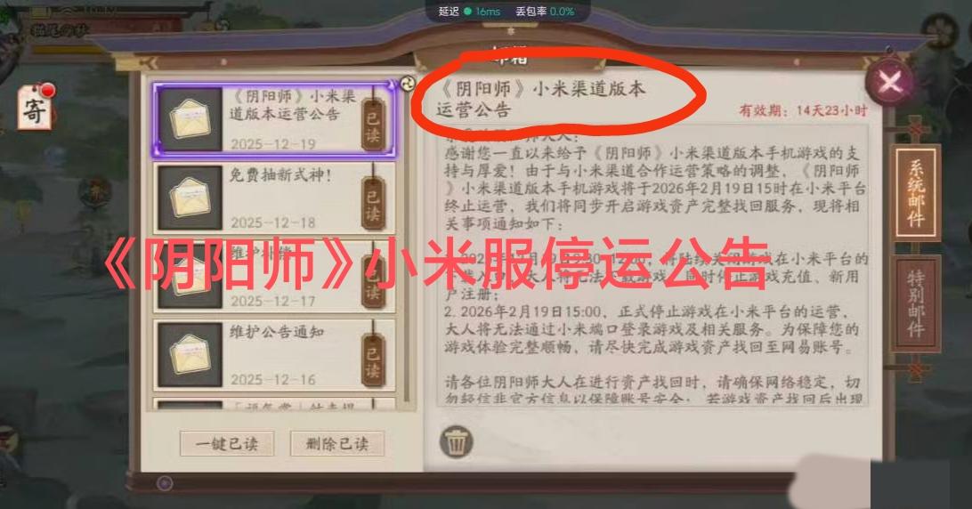 而且,《阴阳师》小米渠道服也要停运了,猜测是合约到期且续约失败。