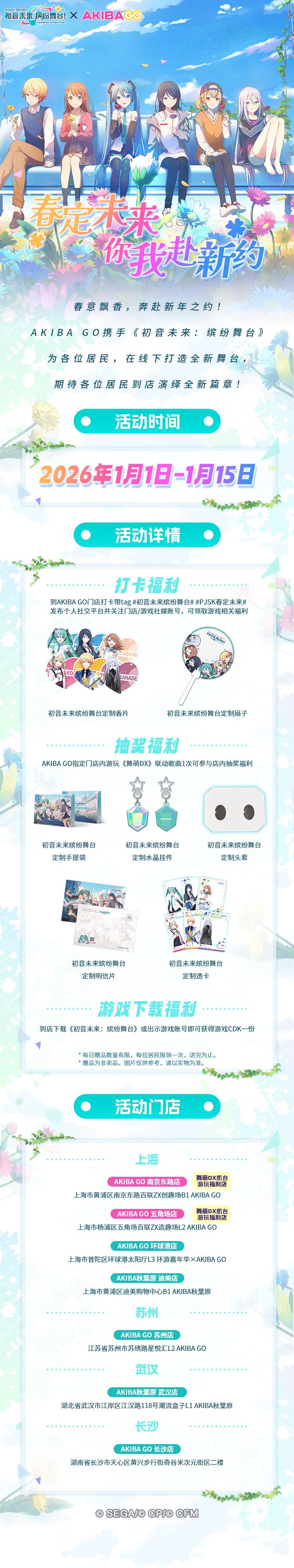春意飘香,奔赴新年之约!AKIBA GO携手《初音未来:缤纷舞台》为各位居民,在线下打造全新舞台,期待各位居民到店演绎全新篇章!