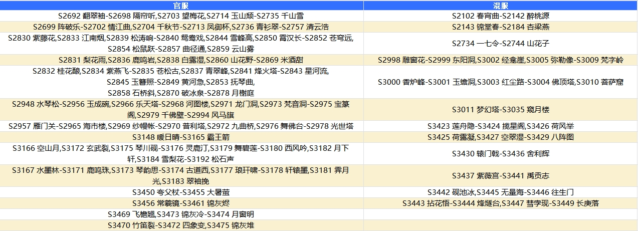S496 竹报平安~S669 风月无边,Y117 九仙山脉~Y159 碧霞满空 战区数据互通;
