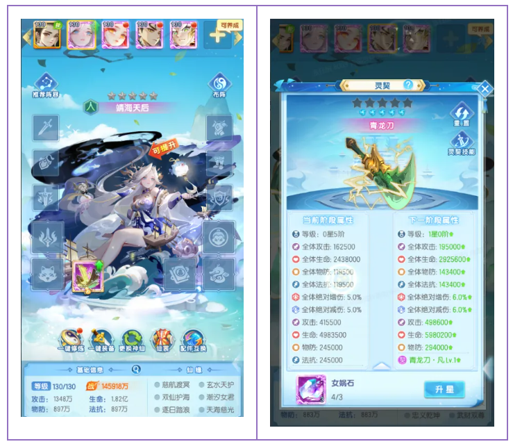 a、道友可消耗一定数量的女娲石提升灵契星级。
