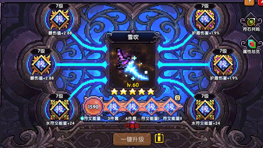 小符文:153盾伤收益大于攻强,选择火抗达标水克律触发条件,选择护盾值增强保盾能力,缺穿透优先下爆伤小符文。