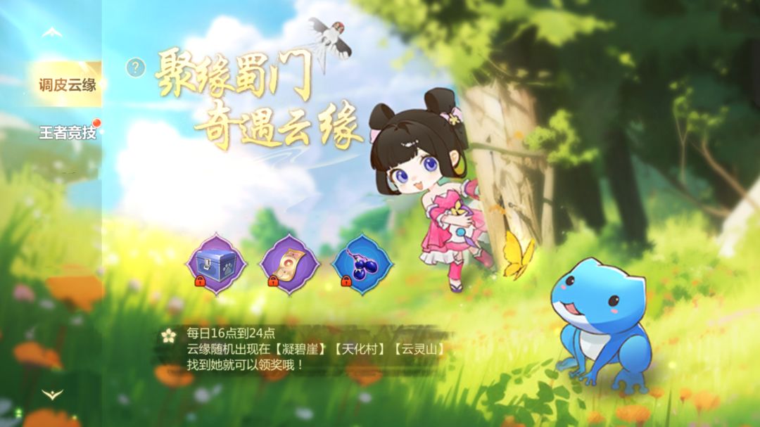 活动内容:活动期间,玩家可前往凝碧崖、天化村、云灵山寻找云缘。每日可参与一次活动,参与即可获得云缘馈赠包*1、2026欢乐礼券*2、紫玄果*20。打开云缘馈赠包必得红玫瑰*2、金兰花*2、曲动情丝*1、一缕妖气*1、仙魂*100等中的一个,另有概率获得红玫瑰礼盒*1。