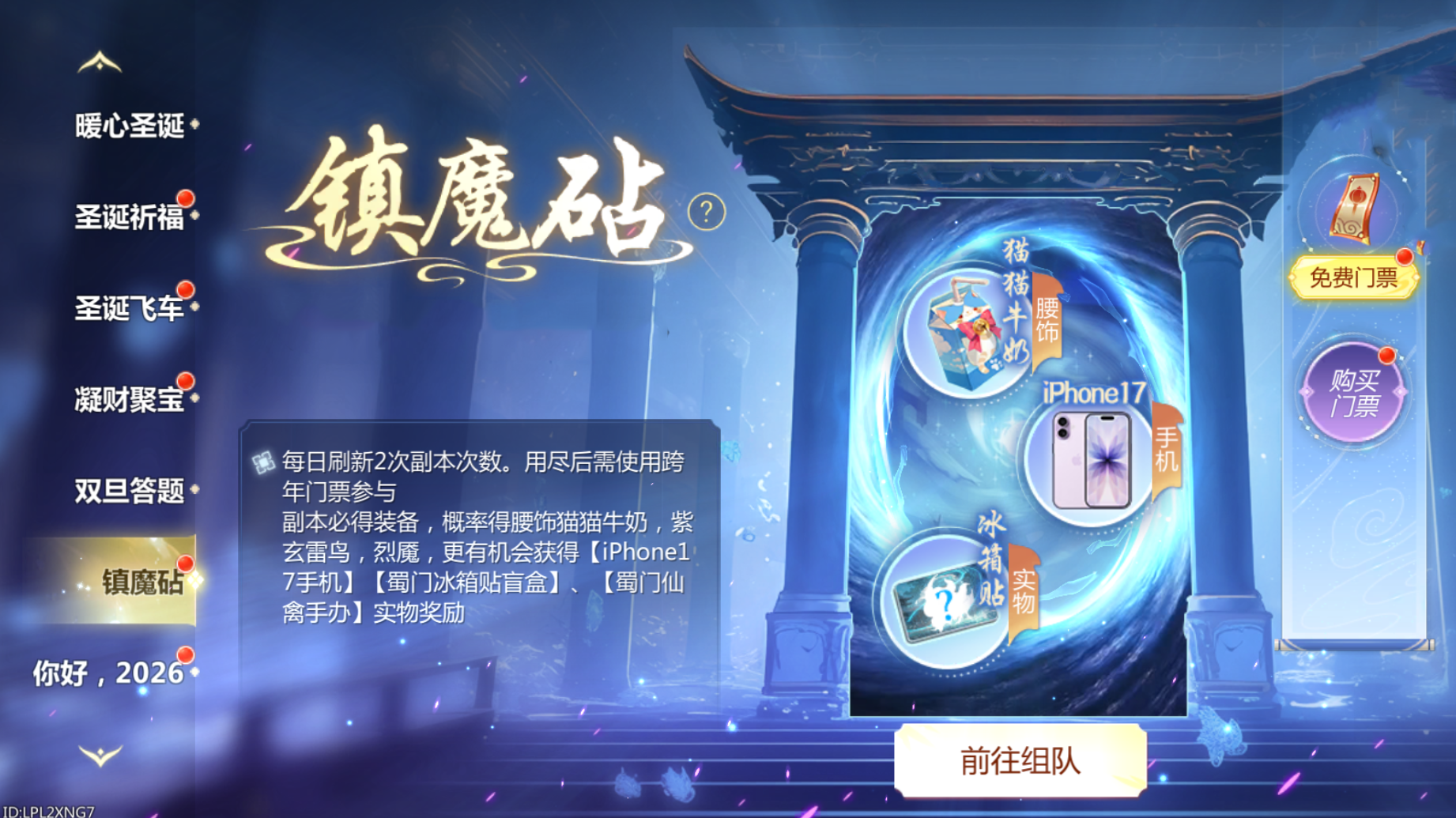 参与挑战镇魔砧不仅可以获得当前服务器等级最高阶金装;还有概率掉落稀有坐骑紫玄雷鸟和烈魇以及全新腰饰猫猫牛奶碎片;更有iPhone17、限量定制冰箱贴相送,就这个跨年活动爽!