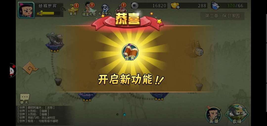 当打通2-7的关卡时任务图标就会出来,可以每天去完成任务,完成任务给经验的