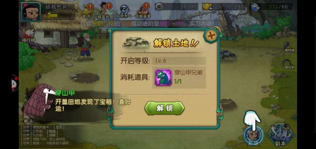 当自己级数不断提升的时候农场里可以解锁越来越多的空地,在空地里可以一键种植,获取银币来加强娃娃属性的,如图: