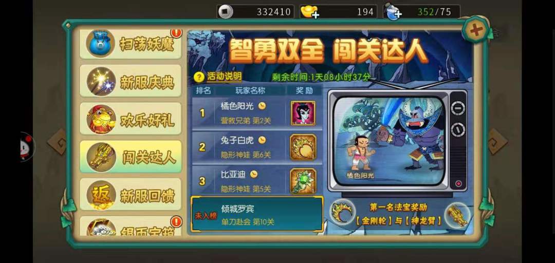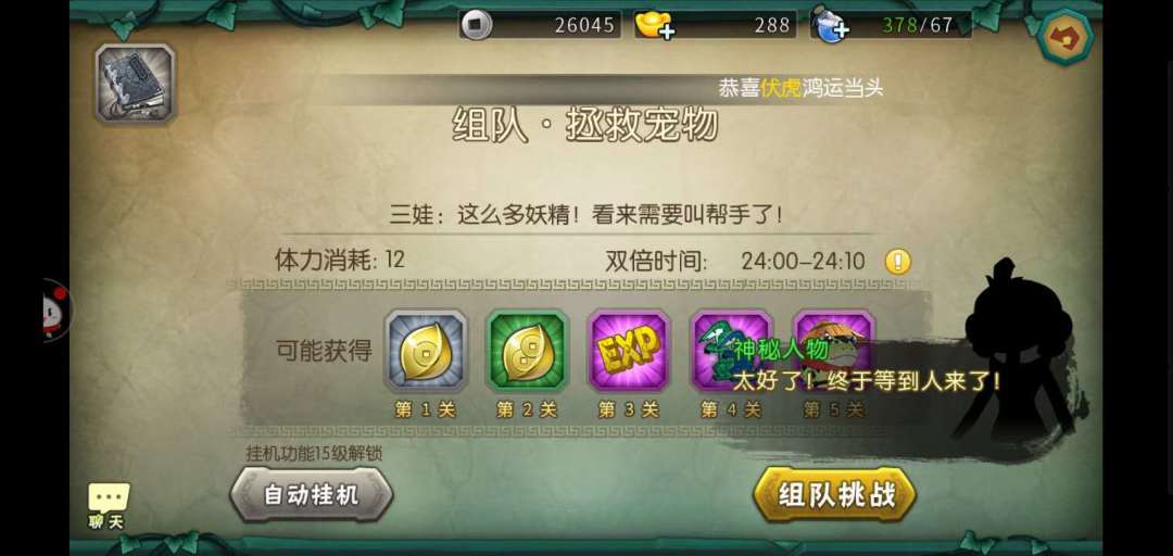 四娃很好刷出来的,通过后会给一个4娃碎片