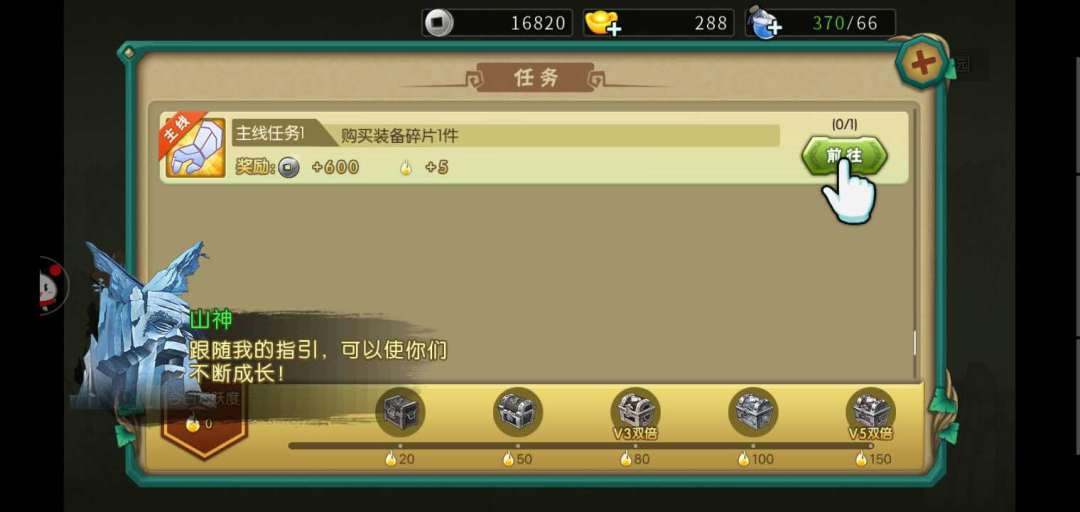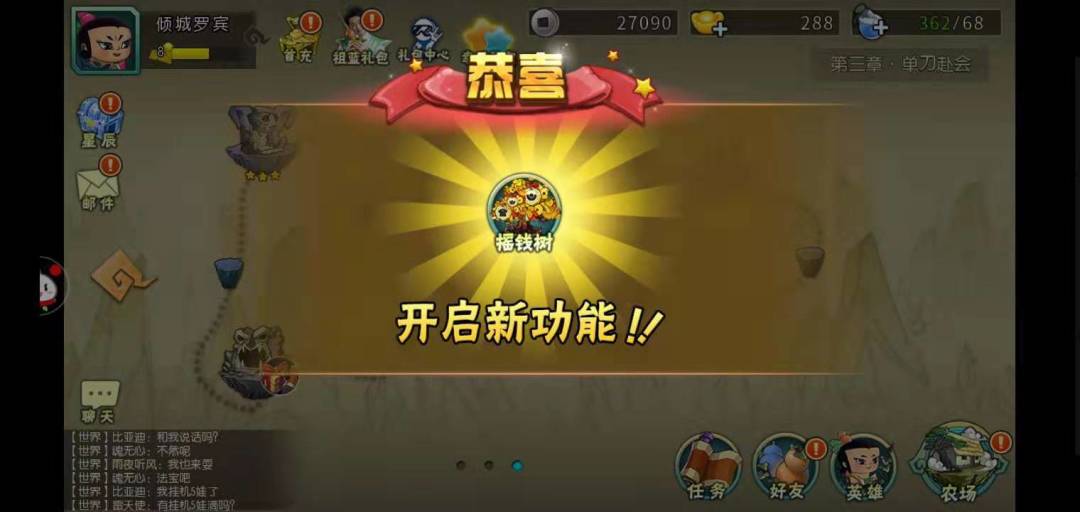 当通过3-2小关的时候会解锁摇钱树,在里面可以摇树来速度获得银币,这个每天免费一次,以后**始花元宝摇的