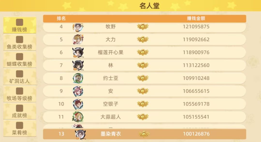 【恭喜】墨染青衣!成为达成亿万富翁成就的第十三位玩家!