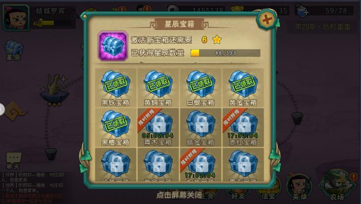 用124去推图很容易的,轻松推过了当不断推图的时候别忘了去星辰那里把宝箱领了