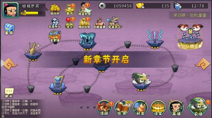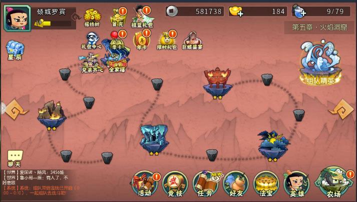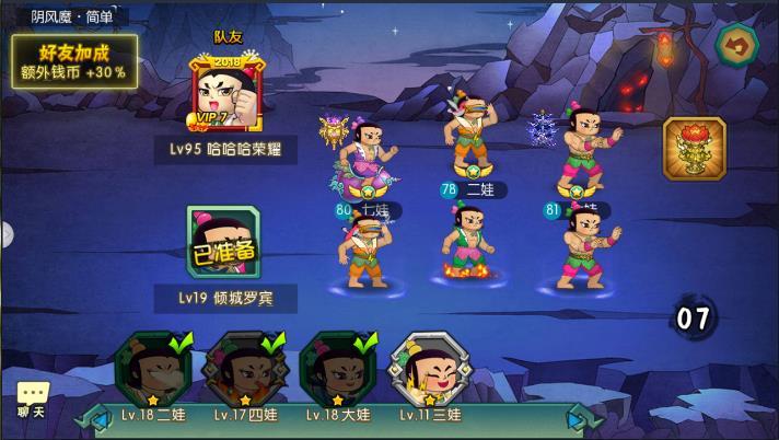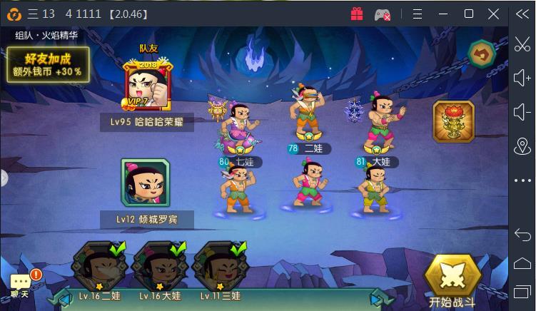 当通了第四章全部的时候就kai放二娃副本,在里面可以去刷二娃碎片的,娃娃碎片到达指定次数后可以升星,升星后的娃娃实力大增目前先不刷二娃,先推图多拿第五章,还是先用124去推图