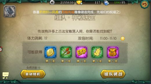 当通关6-13后就会提示可以购買二阶装备,解锁出法宝副本,可以进去刷法宝,把赐福法宝刷到五星就厉害了