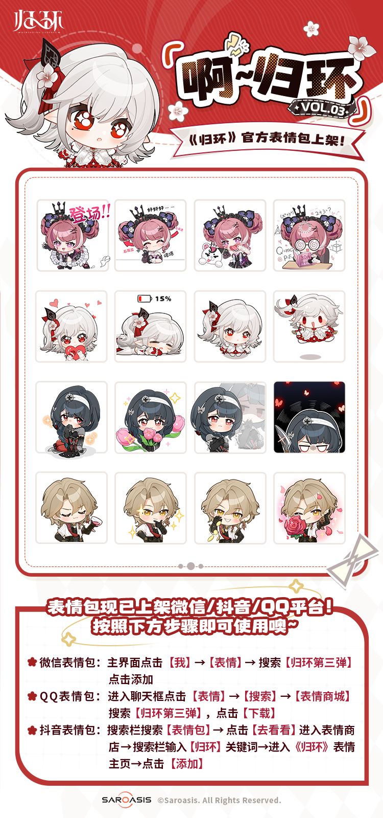 “啊~归环”系列表情包——「归环第三弹」今日上架!本期表情包角色是:露露娅、秋秋、夏奈、修伊特。