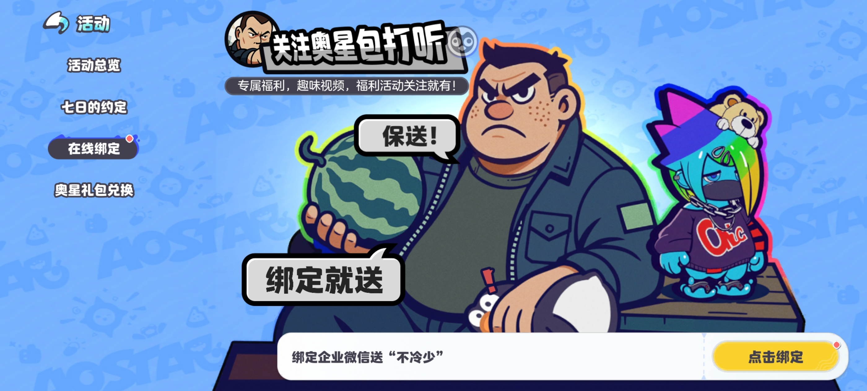 2、活动页中的在线绑定活动为临时测试发放流程使用,后续奖励还会修改,但是哈基人一样可以点击绑定账号,领取不冷少玩一玩~(清档时会删掉哦)