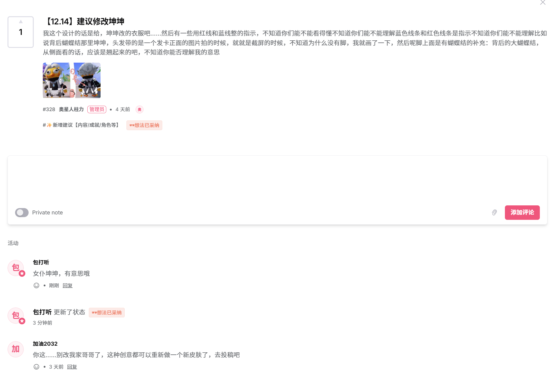 以下是本周部分采纳建议的截图(包打听用鹅毛起誓,策划们每一条都仔细看过了)
