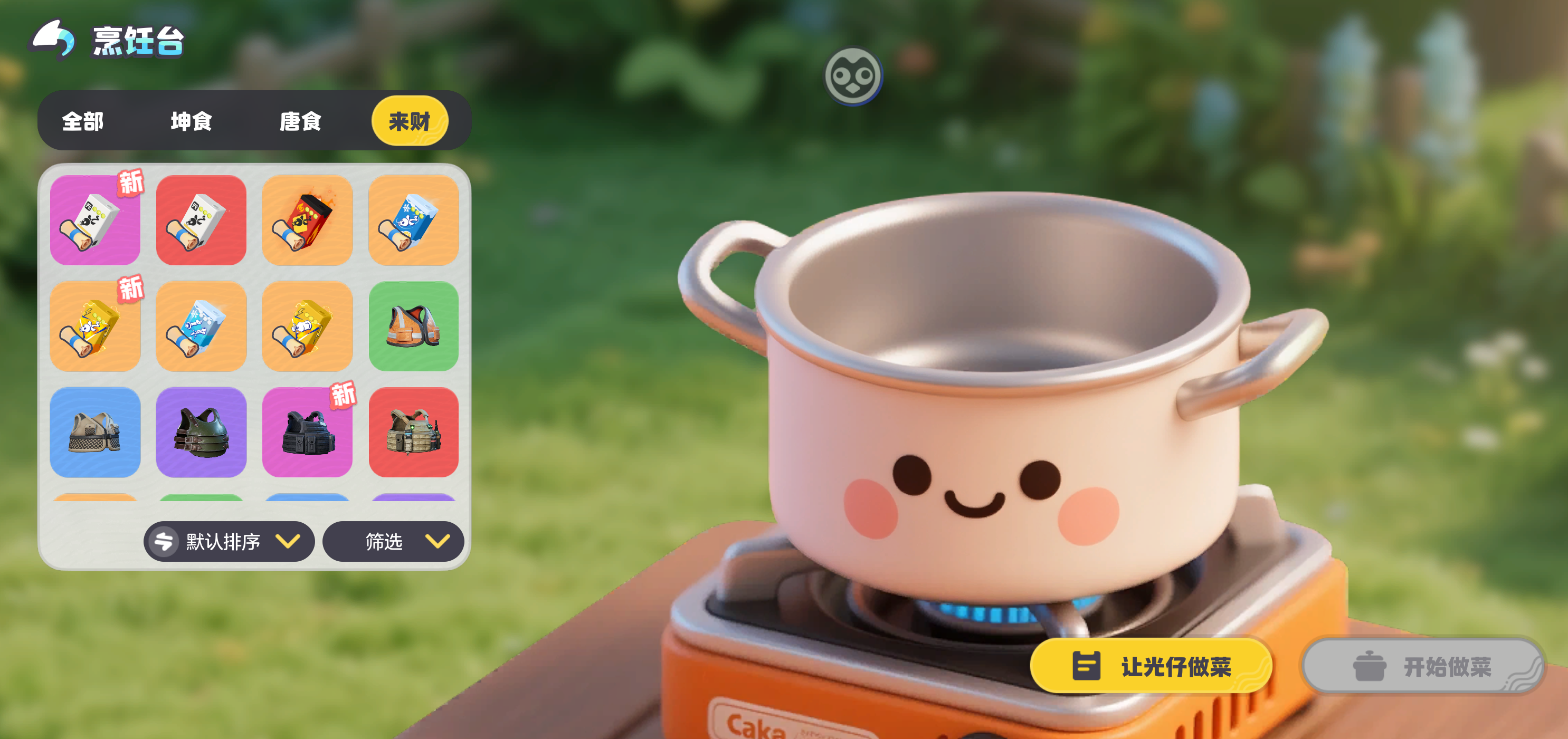 ②:修改了家园初始存在的家具为制作台和烹饪台,现在可以通过烹饪台烹饪来财的装备和消耗道具了